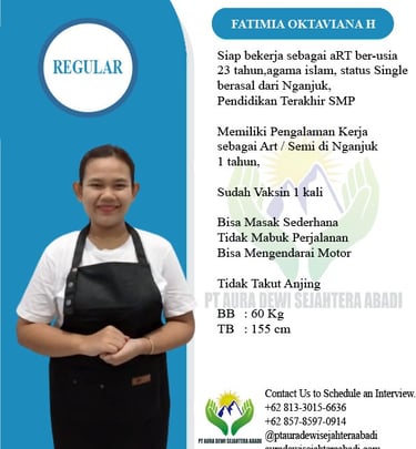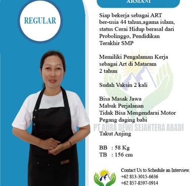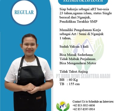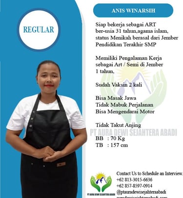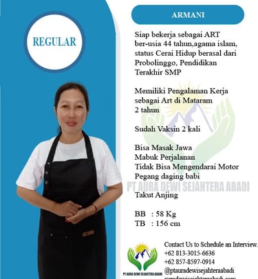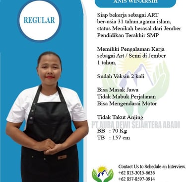 Percayakan pada PT Aura Dewi Sejahtera Abadi, Agency resmi yang bergerak di bidang penyaluran tenaga kerja untuk kebutuhan rumah tangga dan keluarga.